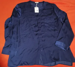 Blusa elegante de manga larga. - Cuello en V. - Bolsillo en el pecho. - Cierre de botones. - color azul marino. Con brillo