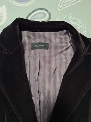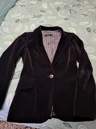 Elegante chaqueta de terciopelo para mujer. Un básico versátil para cualquier ocasión. - Material: Terciopelo. - Cierre de un botón. - Bolsillos frontales. - Color vino/morado oscuro