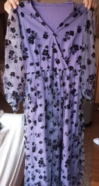 Vestido largo floral tul morado