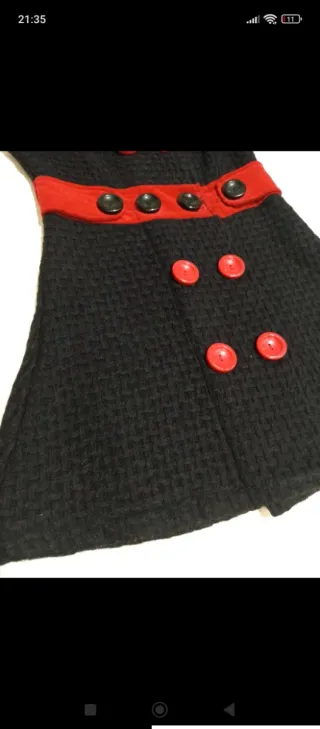 Vestido de inspiración vintage, con un diseño que evoca la moda de los años 70. Presenta un corte favorecedor y detalles que le dan un toque especial. Precioso vestido de invierno tipo pichi, Estilo años 70 Mini Detalle de doble botonadura Poco uso buen estado, puede tener algún defecto menor Talla S, se pueden correr los botones y ajustarlo para XS o ensancharlo un poco, pongo fotos para que se vea el espacio que hay de margen Combina negro rojo Medidas en las fotos