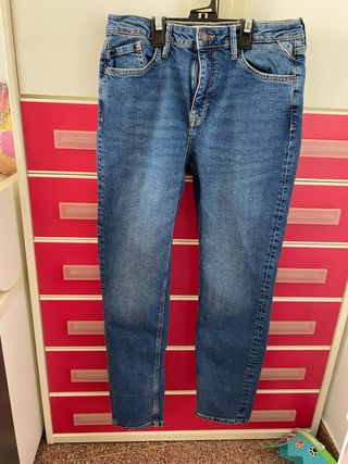 Vaqueros tipo legging de Springfield, muy cómodos y con buen ajuste. - Tejido elástico. - Diseño de cinco bolsillos. - Cierre de cremallera y botón. - Bastante usado pero muy bien conservado