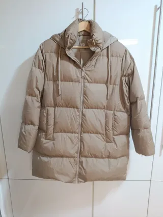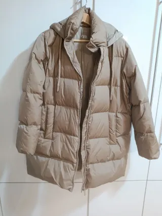 Abrigo plumífero de Zara con un diseño moderno y cómodo. - Capucha integrada. - Cierre de cremallera frontal. - Cordones ajustables en la capucha. - Bolsillos laterales. - Relleno de plumas para maximo abrigo y ligereza y lavable en lavadora