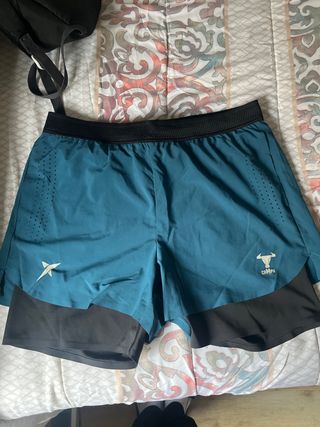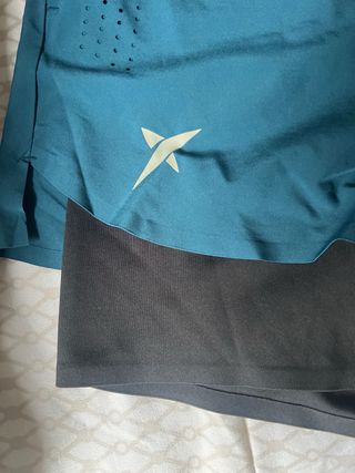 Calzonas deportivas de la marca Drop Shot en color azul verdoso y negro. Diseñadas para la comodidad y el rendimiento, ideal para el padel. - Tejido ligero y transpirable. - Cintura elástica para un ajuste seguro. - Detalle de perforaciones para ventilación. - Doble capa con interior tipo braga. - Logos distintivos de la marca.