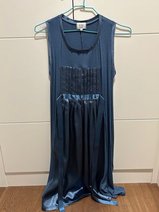 Vestido premamá azul de la marca alía. Sin mangas, goma que ajuste debajo de la tripa y por encima de la rodilla. Muy buen estado