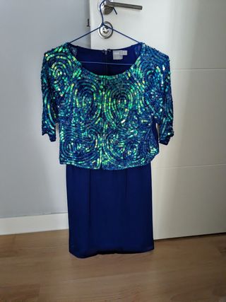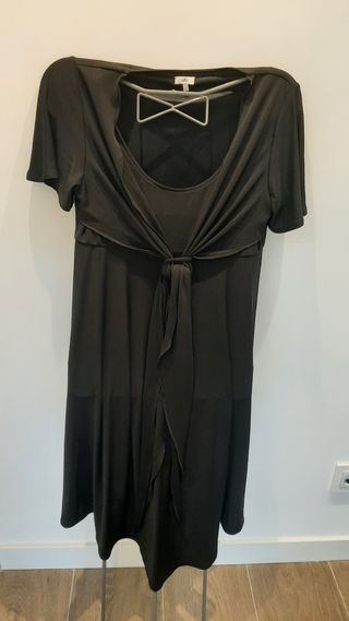 vestido, una puesta, premamá y con apertura debajo para dar el pecho de forma cómoda y discreta. una talla 36-38, es amplio