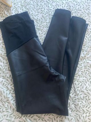 Pantalón H&M de premamá con un diseño moderno y cómodo. - Tejido con efecto piel. - Cintura alta adaptable.