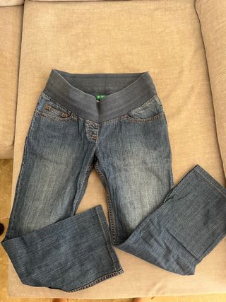 Pantalones vaqueros premamá de Benetton, talla S. Son de color azul y presentan un buen estado. - Tienen una cintura elástica para mayor comodidad. - Diseño clásico de corte recto. Más productos en mi perfil. Se hacen lotes.