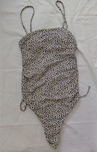 Bonito bikini de premamá en estampado de leopardo. Ideal para disfrutar del verano. - Bikini de dos piezas. - Estampado de leopardo marrón. - Diseño con volantes. Nuevo solo un uso