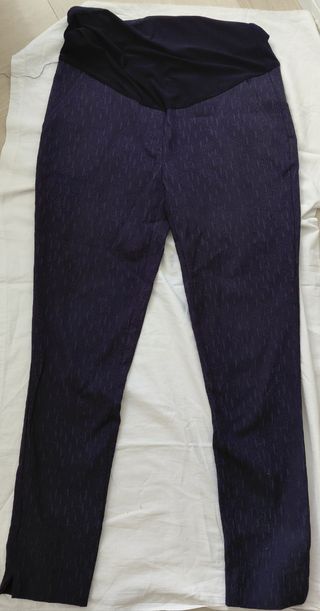 Pantalones premamá azul marino de la marca KIABI, talla 40 (equivalente a una US M). Son de un tejido suave y agradable al tacto. - Perfectos para el embarazo. - Diseño cómodo y versátil. - Se encuentran en buen estado. Malla gris talla xs