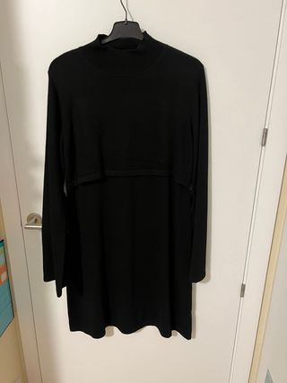 Vestido premamá de punto con cuello alto y mangas acampanadas. - Manga larga. - Diseño con corte en el pecho. - Largo hasta la rodilla.