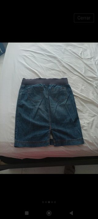 falda vaquera premamá marca Benetton muy bonita con cintura ajustable con dos bolsillos traseros