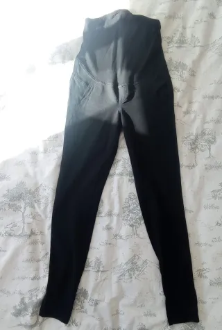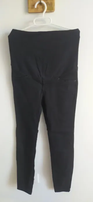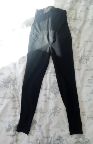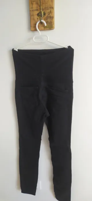 Pantalón de maternidad de color negro, diseñado para ofrecer comodidad durante el embarazo. - Cintura alta elástica. - Tejido suave y flexible. - Elástico - Tiene un pequeño enganche en la parte trasera (se aprecia en una foto) que no se ve al ponerlo.