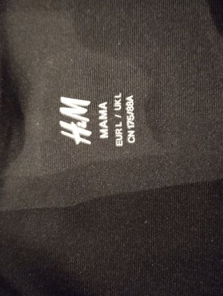 Legging deportivo premamá negro de H&M, talla L. Muy buena calidad, no transparenta. Tiene detalle microperforado en lateral de la parte baja de la pierna.