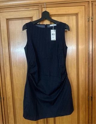 Vestido elegante de corte recto con cuello barco y estampado de raya diplomática. Perfecto tanto para looks de oficina como para eventos formales. Talla: L Estado: Nuevo con etiqueta, sin estrenar Motivo de venta: se me pasó el plazo de devolución. Tejido cómodo y con caída. Diseño moderno y favorecedor, adaptable incluso durante el embarazo. Precio original: 25,99 €