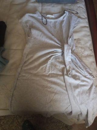 Fotos: 1, 2 y 3: vestido de premama. coloe negro, del H&M. Talla M. Medidas: axila 46 cm y largo 96 cm. Precio 12 euros. Fotos 4,5 y 6: camiseta de premama y lactante, como se ve en las fotos. Color gris. Talla M. Del Shein. Precio 8 euros. Fotos 7,8,9 y 10: falda de premama o embarazada, lleva zurcidos a ambos lados como se ve en mas imagenes. Color verde-turquesa.Talla M del Shein. Nueva. Precio 7 euros. Las 3 prendas por 23 euros. Hago envios y precio por pack.