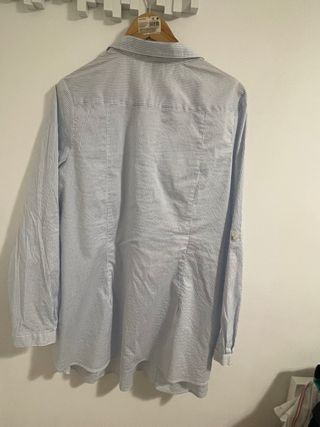 Camisa de algodón con rayas verticales, ideal para maternidad. Se encuentra en perfecto estado. - Cuello camisero. - Cierre de botones en la parte superior. - Bolsillo en el pecho. - Puños abotonados. - De algodón - Muy cómoda