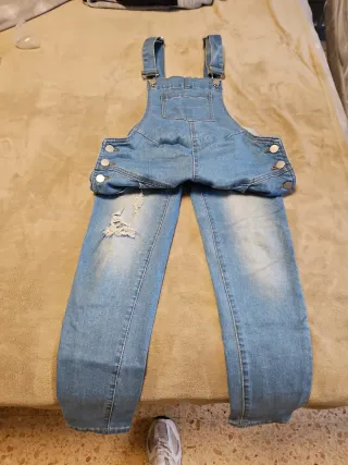 Mono premamá de color negro. Ideal para el embarazo. - Tirantes ajustables. - Bolsillos delanteros. - Cierre de botones laterales.