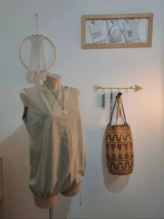 ℹ️ BLUSA SIN MANGAS 🛒 CÓMODA Y ELEGANTE ✨ IDEAL PARA EL EMBARAZO ✨ CORTE HOLGADO TALLA 44 🏷️ COLOR BEIGE 🎨 PRÉNATAL 🛍️