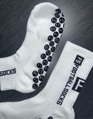 Calcetines FootballSocks sin estrenar. Talla 39-45 Nuevos a estrenar Par suelto: 3€ Díspongo de más unidades en caso de interés, mándame un mensaje y te digo precio por lote dependiendo la cantidad que necesites. A mas pares, mas económico el par. Color BLANCO O NEGRO con un diseño de puntos antideslizantes en la planta del pie. Especialmente diseñados para jugar al fútbol, aunque son útiles en cualquier tipo de deporte para evitar deslizamientos del pie. - Marca: Footballsocks - Color: Blanco - Diseño con FS en la suela - Logo F en la parte superior