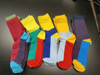 Pack de 15 pares calcetines de fantasía con un diseño colorido y original. Son talla 40-45 y están a estrenar. 80% Algodón 17% nylon 3% Spandex - Diseño multicolor. - Talla 40-45. - Nuevos sin usar.