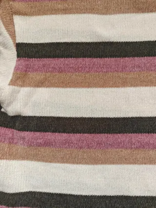 Jersey de punto fino con un diseño de rayas horizontales en tonos beige y marrón. Es una prenda cómoda y versátil. Talla: M. Sin estrenar, con etiqueta. PVP: 36,99€.