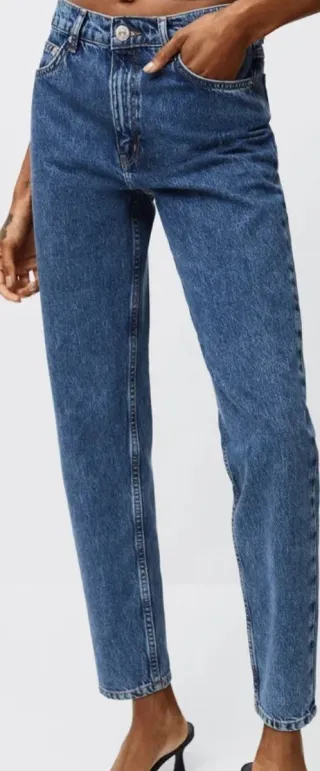 Jeans estilo mom fit de Mango, talla 46. Son nuevos a estrenar - Tiro alto. Tobillero - Lavado azul clásico. - Jeans mom elástico. Azul. Nuevo. - Trabillas. Cinco bolsillos. Cierre con cremallera y botón. Composición 100%algodón, T-46 (cintura 46cm ,longitud Cintura bajo 100cm) Ver en web , precio 30€ Temporada de Mango Marca: Mango. Nuevo sin usar, venía sin etiqueta.