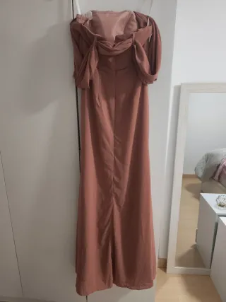 Vestido elegante sin estrenar, con un bonito diseño. Lo compré para una boda a la que finalmente no fui! Es precioso, tiene cascos, queda ceñido, el color es muy bonito y sienta genial al cuerpo - Diseño sin tirantes. - Mangas abullonadas. - Cremallera en la espalda.