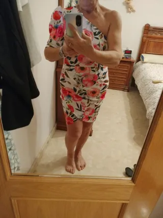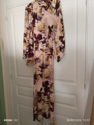 Vestido de invitada con un bonito estampado floral en tonos rosas. Ideal para eventos especiales. Es de Bonita mía y está sin estrenar.
