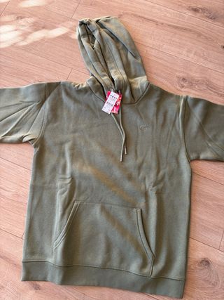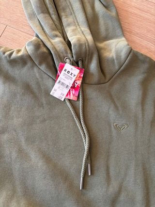 Sudadera con capucha de la marca Roxy. - Color verde oliva. - Logo de Roxy bordado en el pecho. - Bolsillo canguro delantero. - Cordones ajustables en la capucha. - Esta nueva sin estrenar -51cm ancho, 65 largo, mangas desde la capucha 69cm. Ver fotos con medidas