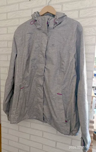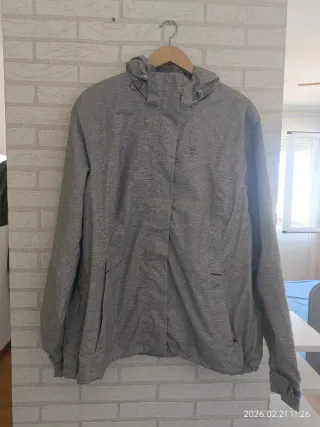 Chaqueta de la marca Quechua, en color gris y talla XXL. Es una prenda nueva, sin estrenar. - Cierre frontal con cremallera. - Capucha ajustable. - Bolsillos laterales con detalle. - Puños ajustables.