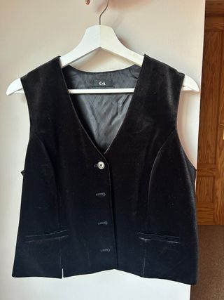 Elegante chaleco de terciopelo y pantalón - Material: Terciopelo. - Cierre de botones. - Bolsillos frontales. Talla Chaleco: M Talla Pantalón: 38