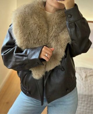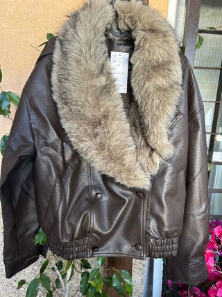 Rebajada!! Sin estrenar! Envíos por Inpost.Cazadora de efecto piel con un elegante cuello desmontable con diferentes posiciones.Modelo viral - Cuello de pelo sintético. - Cierre de botones. - Puños y cintura elásticos.