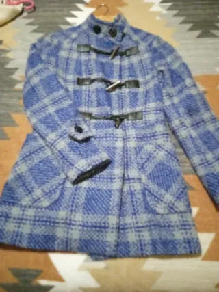 Conjunto de dos abrigos muy bonitos de Benetton y Stradivarius para mujer en talla S-M - Abrigo de color beige tirando a blanco con cuello amplio y botones. Muy elegante. SIN ESTRENAR - Abrigo de cuadros en tonos azules con cierre de toggles, en perfectas condiciones