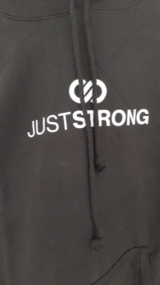 Sudadera con capucha de la marca Just Strong. 80% algodón 20% poliéster. A estrenar, aún con las pegatinas por dentro. Si te interesa algo más de mi perfil se hace descuento automático y ahorras en los gastos de envío. - Diseño con logo en el pecho. - Bolsillo frontal tipo canguro. - Cordones ajustables en la capucha.