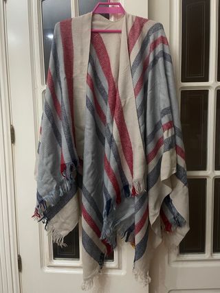 Poncho de Stradivarius con un diseño de rayas en varios colores. Es una prenda sin estrenar. - Diseño de rayas verticales y diagonales. - Acabado con flecos en los bordes. - Lo puedes usar también como bufanda. - Suave y calentito.