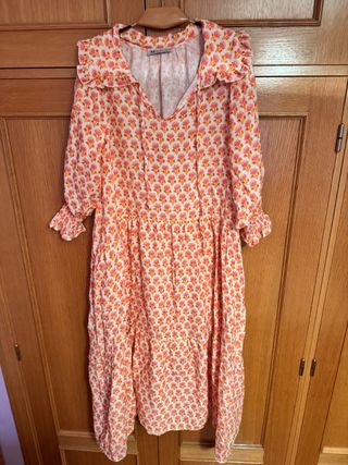 Vestido Muscari, talla única, nuevo sin estrenar. Nunca me lo he puesto, está tal y como se compró. Vestido largo con estampado floral, manga larga con puño fruncido y detalle de volante en el cuello. Tejido de algodon ligero y muy favorecedor, estilo boho / romántico, ideal para primavera, otoño o entretiempo. Queda precioso tanto con botas como con sandalias. 📏 Talla: Única 🏷 Marca: Muscari 📦 Estado: Nuevo, sin uso Cualquier duda, ¡pregúntame sin compromiso!