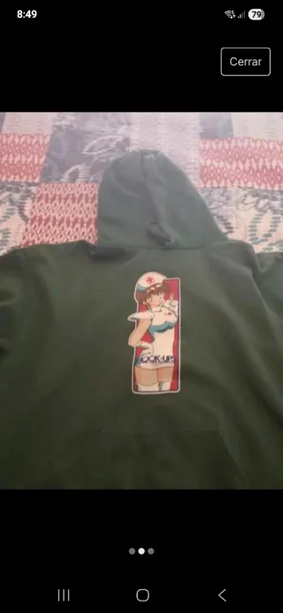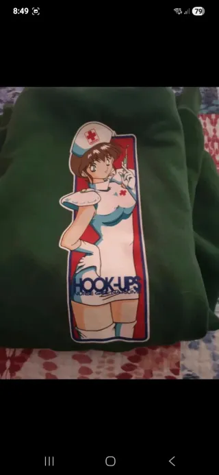 Sudadera con un diseño de anime vintage de la marca Hookups. Es de color verde y tiene un estampado llamativo en el frontal. - Estampado de personaje estilo anime. - Diseño de manga larga.