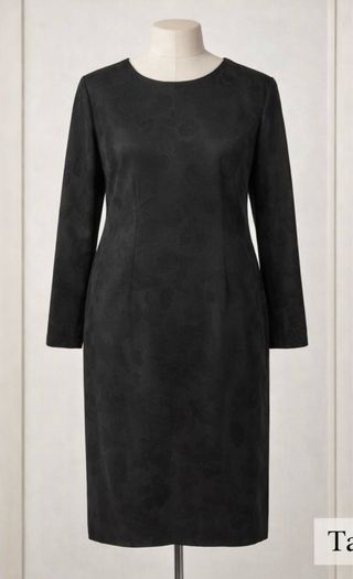 Elegante vestido vintage de corte clásico. - Diseño de manga larga. - Tejido con sutil estampado floral. - Cuello redondo.
