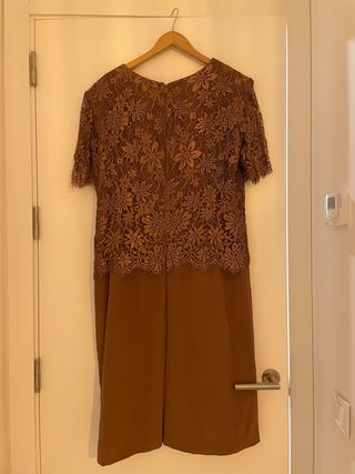 Elegante vestido vintage de talla 46, con un diseño único. Hecho totalmente a mano y máquina de coser. - Cuerpo superior de encaje floral. - Mangas cortas de encaje. - Falda de tela lisa.
