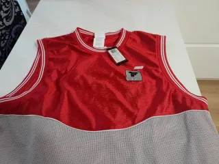 Camiseta deportiva de la marca reebok - Diseño bicolor en rojo y gris. - Detalle de logo en el lateral.