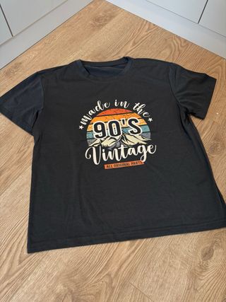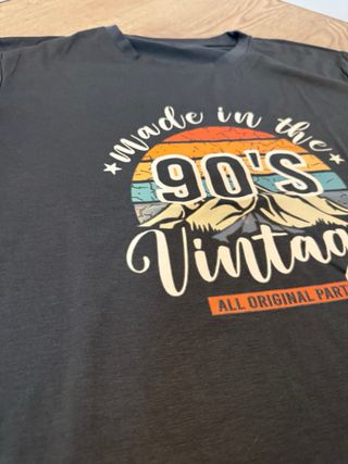 Camiseta con un diseño retro inspirado en los años 90. - Estampado Made in the 90's Vintage con montañas y atardecer. - All Original Parts en la parte inferior del estampado.