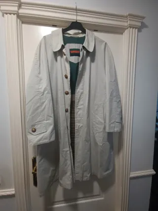 Gabardina vintage Bongardi talla 44 beige Clásica gabardina de caballero con un diseño atemporal. - Cierre de botones. - Bolsillos frontales. - Cuello camisero. Tiene una pequeñísima mancha en una manga, de ahí el precio.