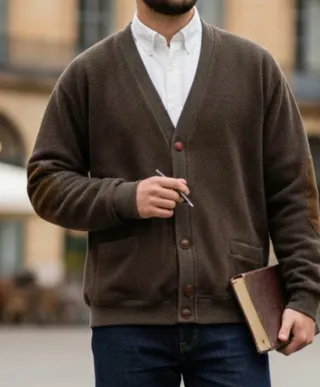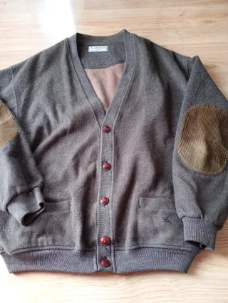 Cárdigan clásico de Burberrys of London, una prenda atemporal. Es de los años 90 bien conservada para tener más de 30 años. Único defecto un desgaste en el puño elástico de la manga. - Diseño de punto y coderas de pana - Cierre de botones bordados con la marca - Puños y bajo elásticos.