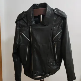 Chaqueta cuero cremalleras vintage