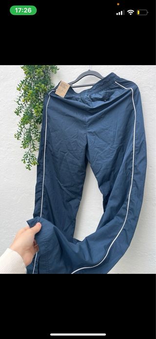 Pantalón deportivo vintage de la marca Reebok. - Diseño con franjas laterales rojas. - Logo de Reebok en la parte frontal. - Estilo retro de los años 90.