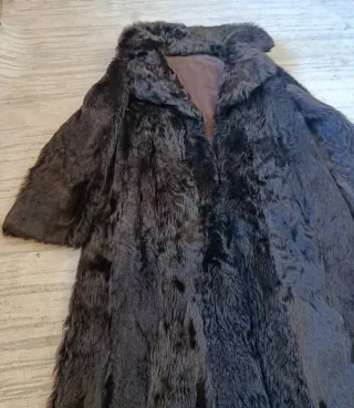 Abrigo de piel natural vintage, pieza antigua procedente de colección familiar. Abrigo largo, elegante y muy abrigado, confeccionado en piel natural suave y densa, de gran calidad. Diseño clásico con cuello amplio y forro interior (sin etiqueta visible). Medidas (en plano) -Sisa a sisa: 52 cm -Largo: 93 cm Corte clásico de abrigo de piel. Se recomienda guiarse por las medidas. Detalles ✔️ Muy buen estado de conservación ✔️ Piel natural de gran calidad (ver fotos) ✔️ Cuello amplio ✔️ Forro interior ✔️ Estilo vintage, elegante y atemporal Precio negociable