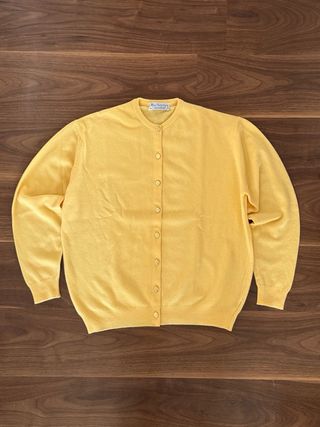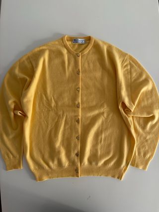 Precioso cárdigan vintage de Burberry en talla única. Una prenda clásica y versátil. - Color amarillo vibrante. - Botones frontales. - Cuello redondo.