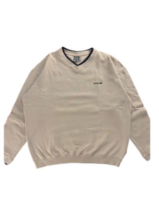 Sudadera clásica de Nike con un diseño atemporal. - Cuello en V con ribete. - Pequeño logo bordado en el pecho. - MEDIDAS (67x66) - Buen estado, ligeramente manchada