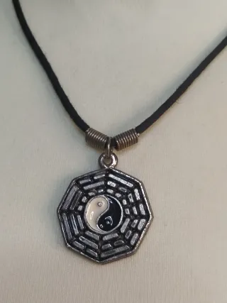 Colgante unisex de bisutería metal plateado diseño octogonal con símbolo Yin Yang esmaltado y cordón textil. Vintage década años 90. ✨ En buen estado, el metal presenta desgaste por el paso del tiempo. Es un accesorio atemporal que aporta un toque espiritual y retro a cualquier look. Moda ropa actual moderno chic tendencia ideal ideas regalo bonito barato oferta oportunidad outlet ocasión liquidación look outfit accesorios completos retro joya joyeria y2k zen estilo grunge indie bohemio