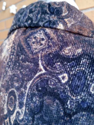 Elegante blazer de pana con un estampado único.Ancho de pecho 50 cm - Diseño vintage. - Cierre de un botón. - Dos bolsillos delanteros.